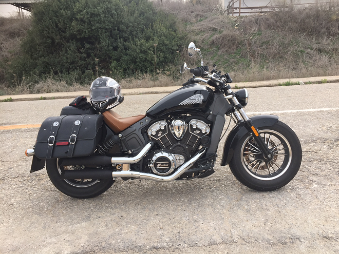 אני מטפס על האינדיאן סקאוט. אופנוע יפה, בעיקר בצביעה הכפולה. לא מדובר בעוד סתם אופנוע. הסקאוט מושך מבטים, נמוך וארוך בעל מראה מוצק מאוד; כאן יש ברזלים, לא פלסטיקים.בכל פינה מופיע הלוגו "אינדיאן" – על המושב, על הצמיג, על שני הצילינדרים.