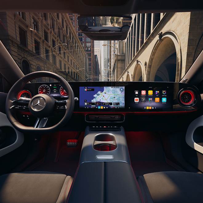מערכת הניווט פותחה בשיתוף עם Google ומציעה אינטגרציה מלאה של מידע בזמן אמת, כולל מסלולי טעינה מתקדמים לרכבים חשמליים. לצד זה, חבילת MB.DRIVE מספקת מערכות סיוע לנהג כולל סיוע בהחלפת נתיב בלחיצה על ידית האיתות.
