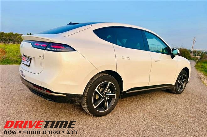 מבט ראשון ב-AION HT לא מגלה מיד שמדובר באחד הקרוסאוברים הגדולים בקטגוריה, אלא בעוד קופה מוגבה בסגנון המוכר מהשנים האחרונות. הפרופורציות מאחור מזכירות דגמים כמו רנו ארקנה, עם קו גג משתפל, אך כאן הממדים גדולים משמעותית. האורך מגיע לכ־4.94 מטר, הרוחב לכ־1.92 מטר והגובה לכ־1.70 מטר, עם בסיס גלגלים מכובד של 293.5 סנטימטר, כך, שבעצם, זו מכונית שנכנסת עמוק לטריטוריית D‑SUV. החזית נקייה, עם חתימת תאורה מודרנית ויחידות לד צרות, והדלתות נטולות המסגרות מוסיפות נגיעה יוקרתית. זהו עיצוב שמעדיף אלגנטיות שקטה על פני דרמה, פחות "תראו אותי" ויותר "תגלו אותי כשאתם קרובים".