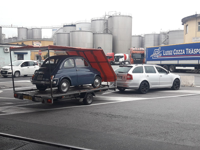 ה-500 שלי עברה שיפוץ אותנטי ואיכותי באיטליה , תוך ש-Jeanluis מעדכן אותי בכל פרט ותמונה . כשהרכב היה מוכן , יצרתי קשר עם הרשויות באיטליה ( מכס , משרד הרישוי האיטלקי ) והסדרתי מקום באוניית RORO מגנואה לארץ ( דרך נמל סלרנו ) .