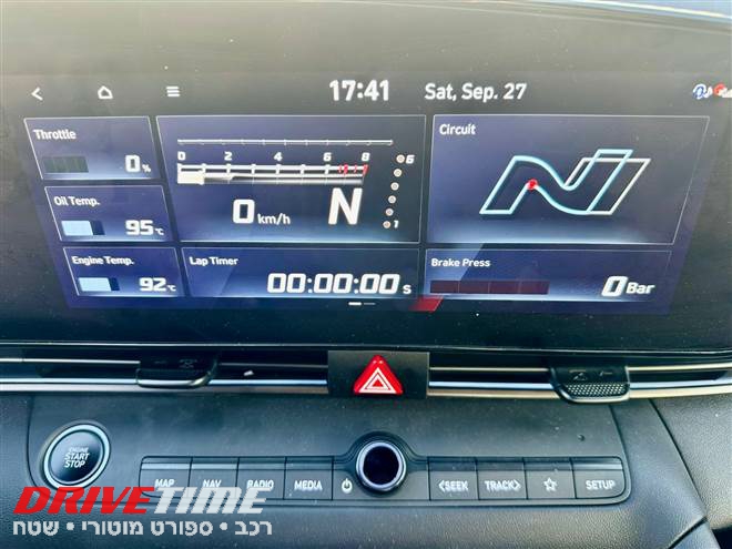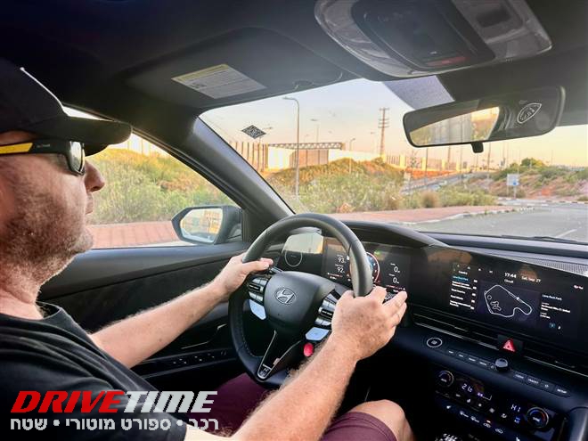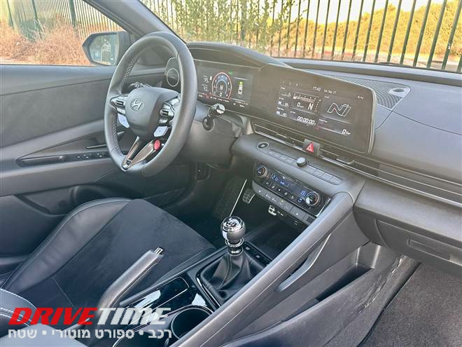 אבל לא לשם כך באנו. אנחנו מחפשים דופק, ריח דלק, תחושת שליטה. אז נכנסנו לאלנטרה – אבל לא לסתם אלנטרה. זו גרסת ה-N, גרסת הנהגים. וזו אפילו ידנית.