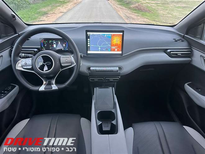תא הנוסעים של דולפין סרף מתגלה כמרחב שהייה נעים מהצפוי לרכב בסיסי שכזה. BYD השתמשו במספר סוגי דיפונים עם מרקם שונה. מול הנהג קיים מסך מידע שימושי בגודל 7 אינץ' ובמרכז לוח המחוונים מסך מולטימדיה ראשי בגודל 10.1 אינץ', מסתובב כמו שכבר הכרנו בדגמי BYD אחרים. לטעמי זה יותר גימיק מאשר תכונה שימושית, בטח כשקישוריות אפל/אנדרואיד לא תומכת במצב מאונך של המסך.