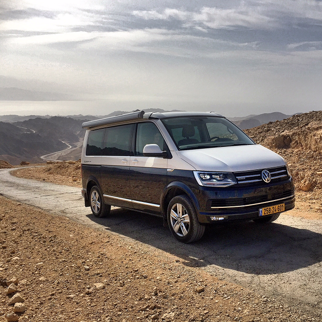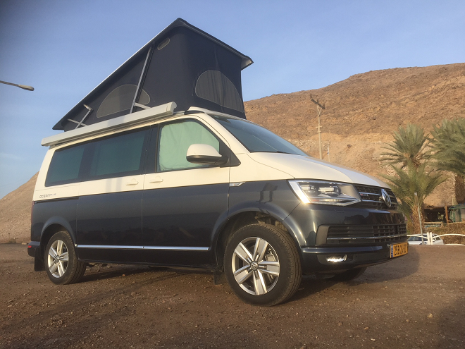 אבל הפעם זו לא עוד גרסה מסחרית להובלת סחורה כמו של דוד ראובן. זהו ה'טרנספורטר קליפורניה' שהוא בעצם מלון על גלגלים, כאן, בגרסת 'OCEAN BLUE'.
