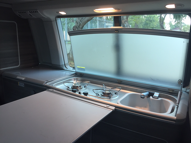 מקרר בתכולה של 42 ליטרים, כיריים כפולים על גז, ארונות לכלי מטבח, מצעים, מגירה ענקית לציוד נילווה ועוד תאי אחסון, הם חלק ממה שמציע המלון הנייד הזה. כל החלונות ניתנים להצללה בעזרת וילונות נשלפים, ותאורה מקיפה בכל פינה אחראים על האווירה הנעימה במלון הקומפקטי.