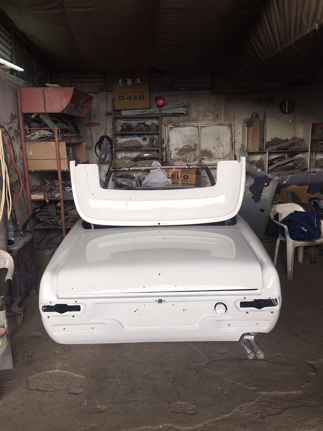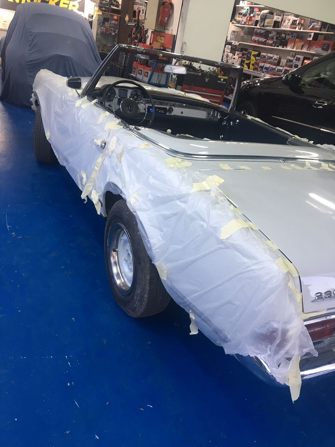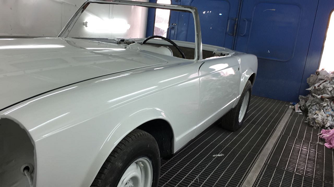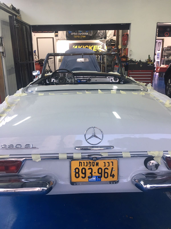 ה'פגודה' שעינכם רואות בתמונות נושאת על גופה את גוון הצבע המקורי עימו ירד מפס היצור ( מספר ויצרן ). השלב הבא בתהליך השיפוץ כלל  התקנת גומיות אטימה ברכב אשר הוחלפו לחדשות ומקוריות.