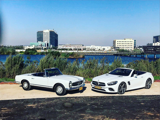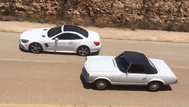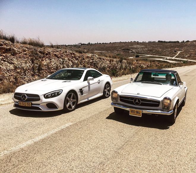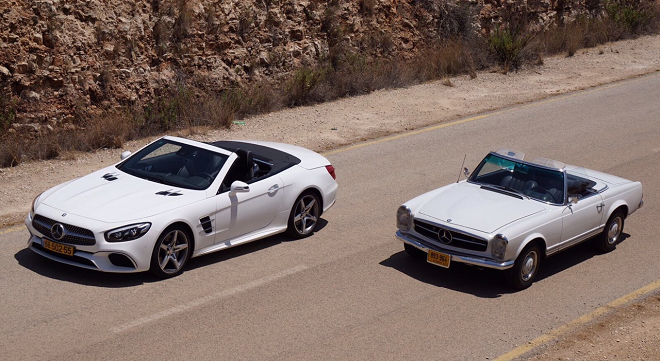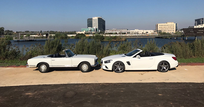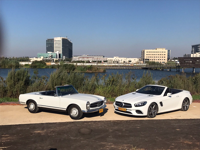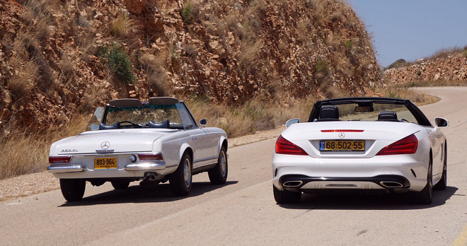 כדי להבין את זה טוב יותר, לקחנו למבחן את ה-SL230 המשופצת. האוטו, יליד 64', מספר את הסיפור שסופר לעיל, כאילו לא מפרידים למעלה משני דורות ביניהם.
