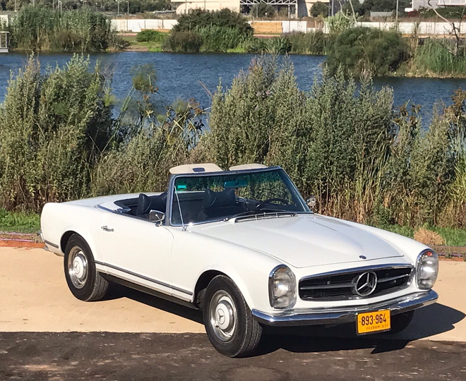 הרמזור אדום. אני יושב מאחורי הגה שחור וגדול מימדים ב-230SL הלבנה, האצבע מלטפת את חישוק הצופר המתכתי. חם בחוץ, מהביל. אבל המזגן שבעל הרכב התקין ברוב תושיה – ולעזאזל האותנטיות – שומרת על האוירה נינוחה ובטוחה. המכונית, דור שני לסדרת SL המכונה באופן כללי פגודה (על שום צורת הגג הקשיח המתפרק), עושה לי משהו. המושבים נוחים, נוחות הנסיעה כמעט סלונית. בימים אחרים, רוכש הפגודה האירופי יכל להתיישב מאחורי ההגה הגדול בפאריז, רומא או פרנקפורט – ולהפליג עם בת זוגו לסוף שבוע מענג במונקו או בסן טרופה. הימים היו אחרים, המהירות לא נחשבה לאויב הציבור והכבישים היו מזמינים…